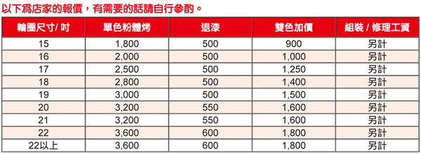 不過,鋁圈粉體烤漆的單價,要比液態烤漆高上許多,若可以在送烤漆前,自行處理好脫漆、修補鋁圈的工作,則可以拉近兩者的價差,就算無法自行脫漆加修補,光憑完工後的漆面質感與耐久性,還是值得你將鋁圈送去粉體烤漆的。