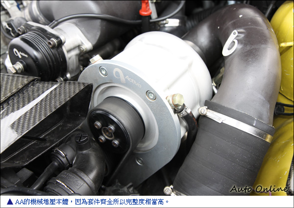 原廠肚內強度夠 機械增壓效果明顯![]() ▲原廠引擎除了改裝機械增壓外,進氣歧管也改為AA短歧管,讓進氣更順暢反應更快。車主以輸出較為線性的機械增壓來提升動力,選擇改裝廠牌為美國專門設計BMW增壓系統的Active Autowerke(以下簡稱AA),AA是改裝BMW渦輪增壓系統起家,但改裝產品涉及動力系統、底盤系統、制動系統、排氣系統以及外觀套件,而且專做BMW車系改裝套件及動力提升。以BMW E46 M3原廠肚內活塞、連感及曲軸可以對應AA出品的525hp機械增壓套件,動力提升對引擎內部機件不會有太大負擔或者減低引擎耐用度。