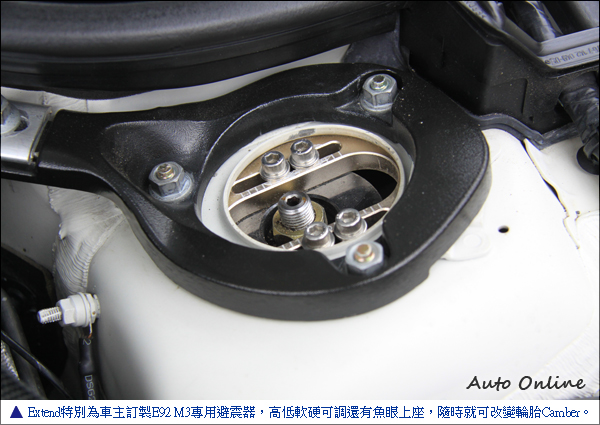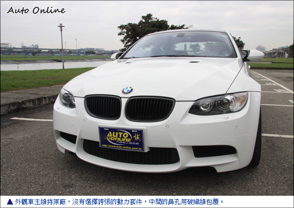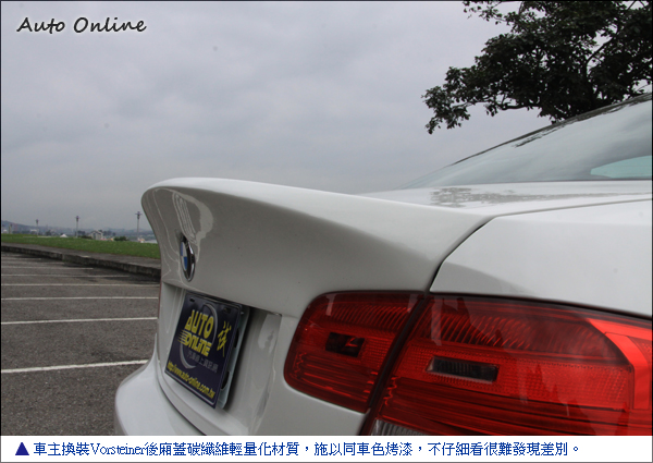 ![]() 這輛白色BMW E92 M3在外觀沒有特別花俏的改裝,原廠就稍微隆起的引擎蓋代表它深不可測的實力。外觀維持M3原廠空力套件,只換裝Vorsteiner後廂蓋,造型就像把尾翼跟後廂蓋合為一體,非常適合喜歡低調的車主選購。