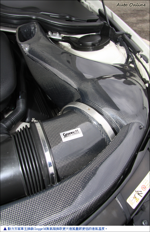 ![]() ▲原廠420hp最大馬力及40.8kg-m最大扭力,0-100km加速4.6秒,不用再經過改裝馬力輸出表現就很亮眼。動力方面車主沒有大幅升級計畫,E92 M3搭載代號S65B40的V8自然進氣引擎,加速力道沒有同門師弟335i雙渦輪來的兇猛,但V8自然進氣引擎線性的加速性依舊可以把師弟335i拋在後面。原廠420hp最大馬力跟40.8hg-m最大扭力對車主來說非常夠用,只換裝Gruppe M集氣箱換取更大進風量跟更低的進氣溫度。進氣溫度攸關引擎馬力,舉例來說車輛馬力120hp,當進氣溫度80度跟40度兩者馬力相差將近20hp,可以得知進氣溫度跟馬力的相對關係。