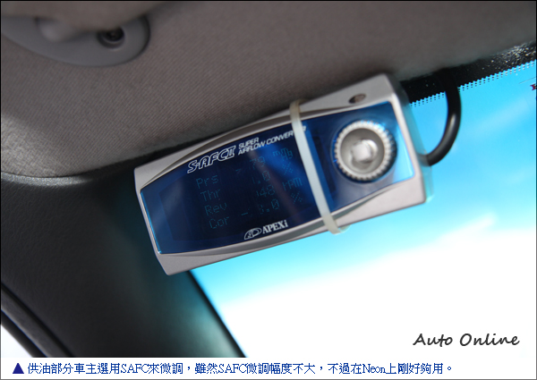 車主喜愛DIY 自製許多怪「機絲」![]() ▲特殊的塗裝顏色讓這台灰色Neon開在路上常常受到路人的關注。搶眼的條紋塗裝Neon是車主春天的愛車,基本的進排氣升級,提升Neon的加速感受,為了要讓原廠引擎發揮它該有的表現,車主特別用原廠電腦搭配HKS F-CON SZ調整供油及點火,不過目前只能控制噴油系統,點火部分還沒有辦法騙過原廠電腦所以無法介入,電系是改裝最繁瑣難搞的環節,車主想要另尋覓電系強的改裝店家來解決無法控制點火的問題。