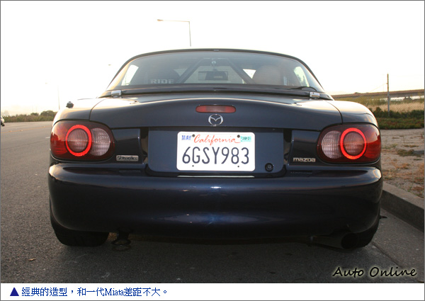 此次試駕的MAZDA Miata MX-5,是屬於二代車型。因為安全法規,二代Miata捨棄了上掀式頭燈的設計,同時在外觀上也更為精煉成熟。比起一代車型,二代的MAZDA Miata MX-5改進了為人詬病的剛性不足問題,不僅加粗了防傾桿,並且多了ABS可選配。在引擎方面,分別有1.6升和1.8升可以選擇,1.6升配置四速自排或五速手排,1.8升則有六速手排可供選擇。其後還推出許多特仕、限量版本,最強的渦輪版本更有180匹馬力、0-96km/h僅需6.4秒的實力。