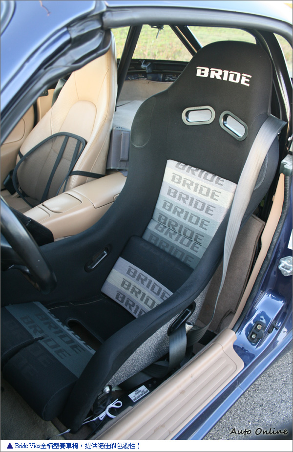 由於喜愛馳騁賽道,車內的Bride Vios全桶型賽車椅提供良好的包覆性,同時造型也相當適合身形較為瘦小的東方人。由於此車要兼顧到賽道上操控以及平時的用車習慣,在內裝方面並無太多無謂的改裝,本身相當注重整潔的Ken,非駕車必需品一律不會在車內出現。