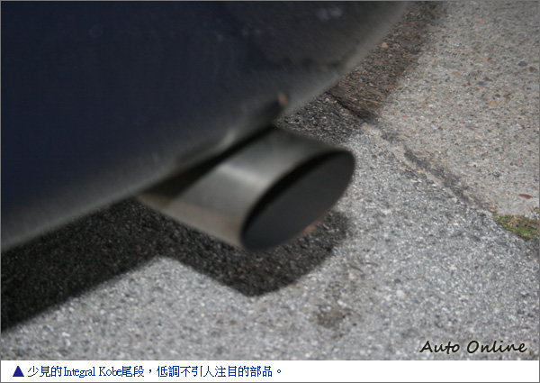 引擎則是為日後機械增壓上身所作好準備,改裝的品項則有:六速手變速箱的換裝、37mm Mishimoto散熱水箱、手工進氣香菇頭換裝(改裝至右方,預留左邊以便機械增壓換裝)、RS III中段排氣+Integral Kobe尾段、 DIY電腦監控程式、