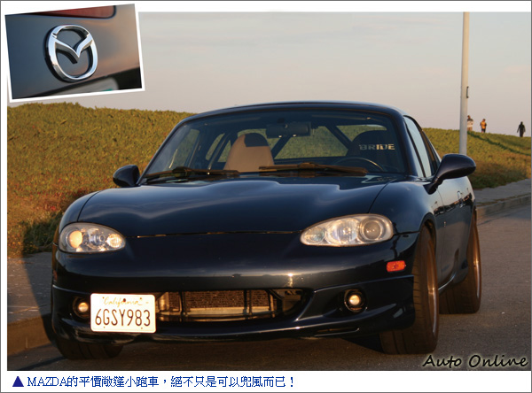 在賽道上,底盤絕對是第一要素,無論有多強力的引擎,面對賽道還是得要有相當的平衡才讓操控適時的發揮。Miata天生優異的體質—車重輕且絕佳的重量平衡,我想已經是讓往後的改裝事半功倍。看來Mazda除了獨門的轉子引擎之外,在講究平衡的Roadster上也是有讓人稱道之處!