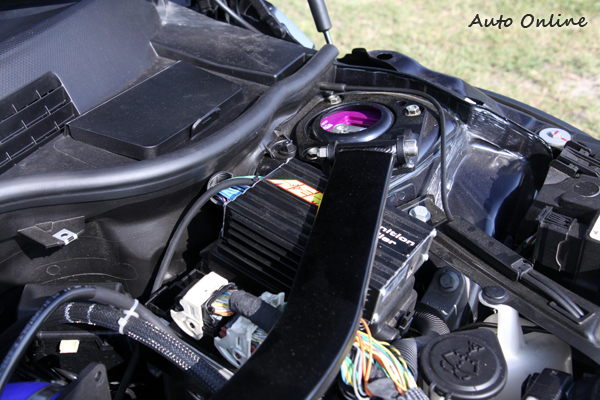 ![]() ▲渦輪大小維持原廠並未更換,持壓設定在1.5bar,初估最大馬力為220hp。至於動力部分,Mini Clubman Hampton Cooper S搭載一顆1.6升渦輪增壓引擎,在引擎內部未加強化前,車主將增壓值微微提升持壓1.5bar,增壓值提升最大隱憂原廠點火與供油沒辦法一起跟進,所以特地加裝AEM外掛電腦來修改點火與供油曲線,選擇AEM外掛電腦Tuner不需要拆解原廠電腦來修改晶片,只需要利用跨接線路的方式,不拆解原廠電腦自然就不會有保固上的問題。 ![]() ▲選擇AEM外掛電腦來修改點火與供油曲線, Tuner不需要拆解原廠電腦來修改晶片,只需要利用跨接線路的方式。![]() ▲換裝JCW排氣頭段、AK Downpipe、Quicksliver中尾段,讓排氣能更順暢,引擎的聲浪也在換裝中尾段之後更加明顯。![]() ▲碳纖維集氣罩加上引擎蓋上的集風罩,提升進氣順暢與流量,能有效地吸取冷空氣,增壓值提高後維持良好的引擎燃燒效率。![]() ▲原廠以全黑色調基底搭配以Damson Red滾邊並以精緻橘紅色縫線的真皮座椅,包覆性差了一點,車主還未有想更換賽車椅的念頭。