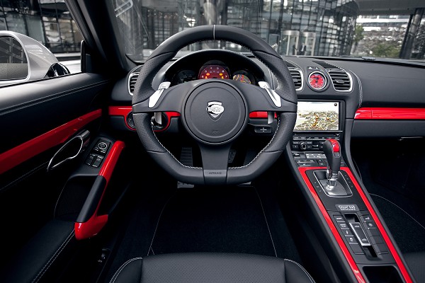 ![]() 內裝為客製化改裝,可以依照車主要求來修飾內裝質感,想要與車身同色烤漆,或者加裝熱血的碳纖維飾板,以及要製造高貴質感的木紋飾板,都可以依造車主的要求來修改。而TECHART專屬的銘牌不可少,方向盤上、排檔桿後方都有TECHART金屬銘牌。在TECHART加值下,Boxster不僅外觀看起來更有殺氣,在動力維持原廠下,操控大幅度提升增添駕駛樂趣。