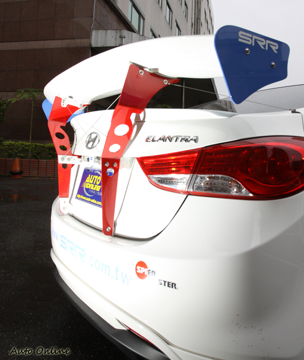原廠電腦難克服![]() ▲雪白的車身外觀,搭配Hyundai原廠小包圍式樣,加上自家Logo與大燈黃色燈膜。雪白的車身外觀,搭配Hyundai原廠小包圍式樣,讓Elantra外觀熱血破表。 ![]() ▲小包圍下方加上碳纖維定風翼,姑且不談效果如何,在視覺上有加分效果。![]() ▲尾翼的角度可以做微調,設定賽道需要的車尾下壓力。![]() ▲GT超大型尾翼在安裝,不需要破壞車體鈑金,利用牌照框上的螺絲,搭配夾具固定。![]() ▲GT超大型尾翼增加高速時車尾穩定性,但要提防警察伯伯的關愛眼神。