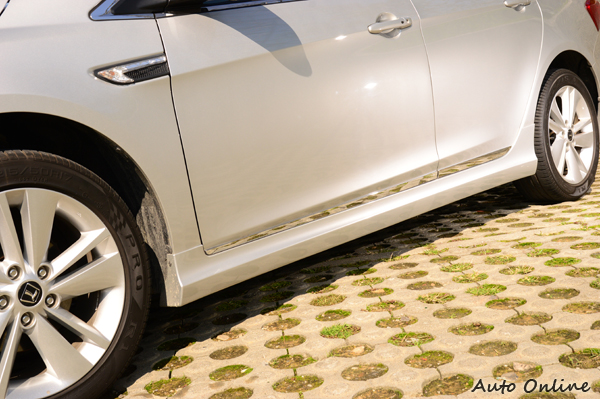 ![]() ▲原廠設計的前下巴造型比較內斂,適合想要低調的車主選購。![]() ▲側裙上方的鍍鉻飾條需要另外加購選配,不在四件式空力套件選項裡面。