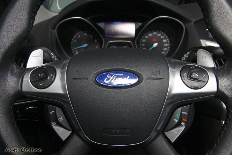 ![]() ▲內裝維持原廠設計,沒有安裝任何突兀的改裝品。至於內裝並未多下琢磨,唯一的改裝品就是自行研發的換檔撥片。 ![]() ▲Focus車主有福了,比照原廠質感的換檔撥片。![]() ▲目前使用D-BOX測得,0-100km/h為7.7秒左右,與原廠相比小幅度成長。