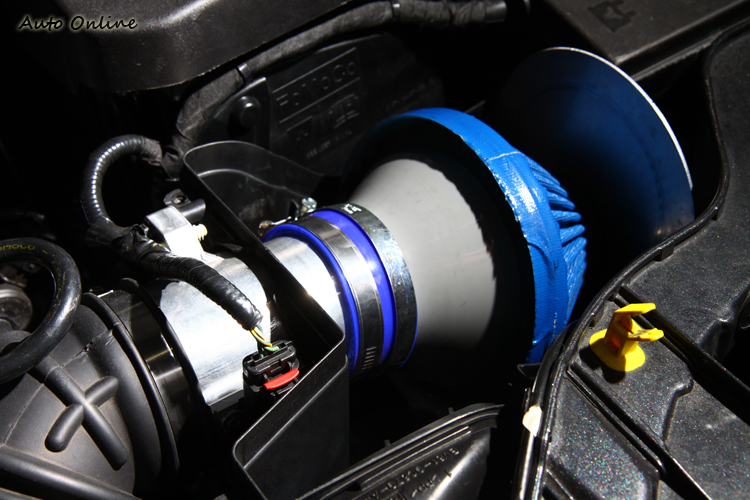 ![]() ▲打開引擎蓋看不到任何改裝品,這就是Focus車主要的低調。這次介紹的是Focus 2.0S車款,車主主要針對引擎進、排氣做適當的改裝。Tuner表示,Focus搭載的是雙離合器自手排變速箱,不能以傳統自排變速箱的觀點來改裝進排氣,必須介於兩者之間。 ![]() ▲香菇頭安裝在原廠大小的集氣箱內,管徑大小與集氣箱的氣室都要經過緊密的測試。