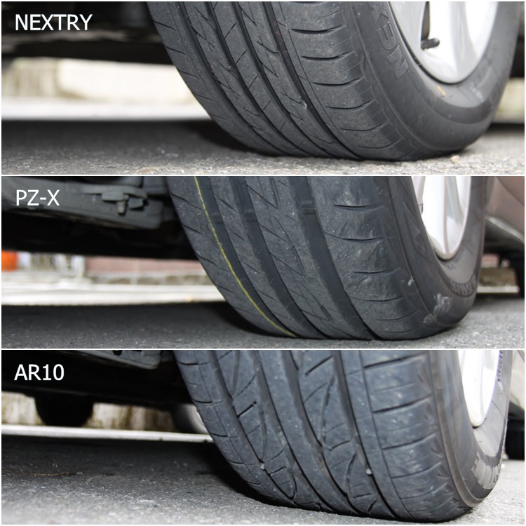 如果拿這三款胎來比較,AR10的胎質較硬,算是舒適與安定性設定比較平衡的輪胎;NEXTRY胎質軟,除了需要更專注控制車身重心偏移與路線,車速一快就會明顯聽到過彎時的慘叫聲,對駕乘者的安心感多少會有影響;至於PZ-X高速換車道時的晃動感會比NEXTRY輕微,但差異不算大,彎中的穩定性倒是與AR10差不多,而且一旦尖叫起來也毫不客氣。
