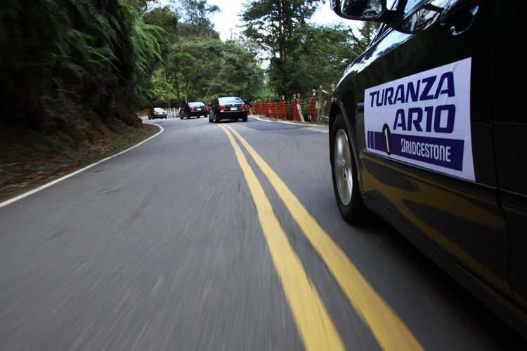 ▲車隊開往蜿蜒的日月潭環湖公路,測試輪胎的操控與穩定性能。