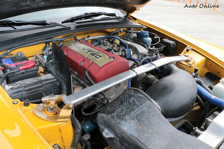 台灣總代理並未在台販售S2000,所以出現在台灣的S2000不是留學生帶回就是貿易商引進,今天所試駕的是黃色S2000美規AP2,是車主自行找貿易引進入台灣。此車最醒目的就是換裝J’S Racing MK2外觀套件,如果你是本田迷,對J’S Racing這個品牌應該不陌生。J’S Racing在1999年大阪所創設,2001年3正式成立改裝會社,主要是針對Honda車系研發一系列強調競技的改裝部品,再以參賽的的經驗開發市售版套件。主要產品有引擎周邊部品、車身強化、傳動系統與外觀空力套件。