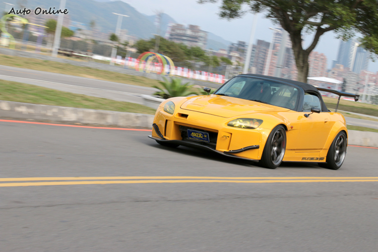 S2000在本田迷心中有著崇高的地位,設計以操控為第一優先,擁擠的駕駛艙以雙座配置,幾乎坐在後軸開車的駕駛姿勢,造就完美前後50:50車身配重,配上迷人的特殊VTEC高轉速排氣聲浪,可以說是Honda車系中完美作品。這次試駕的S2000以競技為改裝方向,換裝整套外觀、底盤強化套件,在一般道路開起來有點不舒適,但是進到賽道絕對有無限淺力可發揮。