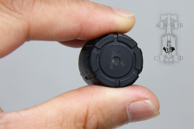 ![]() ▲首先鎖入螺絲,接著旋緊傳感器,然後利用內附扳手把螺絲旋回逼緊,加強固定也兼作防竊,安裝過程就算完成。安裝方法一如其它胎外式TPMS簡單,首先取下氣嘴外蓋,旋入內附的六角螺帽後,再將傳感器鎖入,以六角扳手將螺帽旋回逼緊以確保傳感器不會輕易脫落即可,至於接收器當然直接插入點煙器就行了。說明書提到SPY506為了不浪費電力,在進入睡眠狀態後必須讓車速超過20km/h以上才會“喚醒”傳感器,而我們首次測試時,果然在車輛才剛起步就立刻看到四輪的胎壓數字跑出來,速度比胎內式的P409T迅速許多。 ![]() ▲仔細看傳感器上面印著「A」,代表這顆必須安裝在左前輪,交換車胎時別忘了依照順序安裝,才能和接收器的顯示對應。