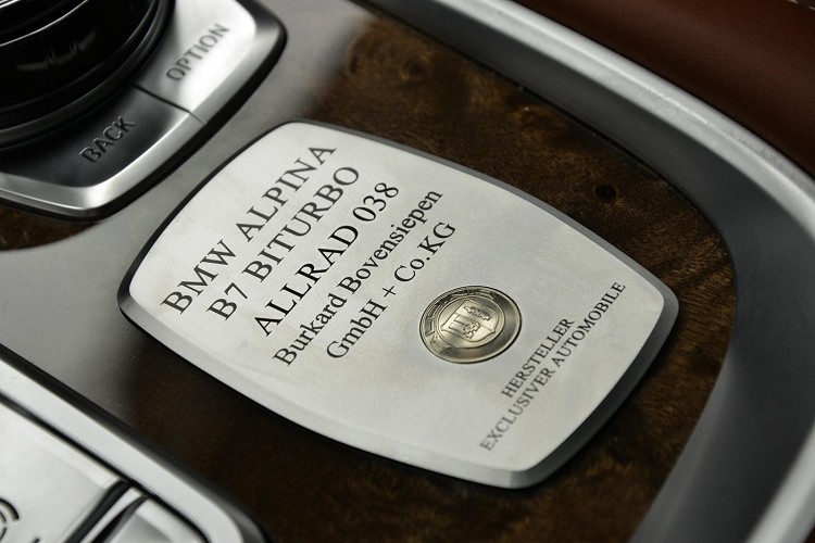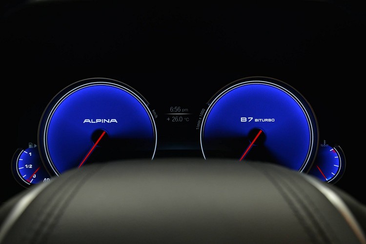 B7外觀使用棕色作為主要車身色調,再加上ALPINA專屬的車身彩繪,使每一輛ALPINA打造出來的車款都有相同韻味。車身前、中、後加上低調的小包圍,不想因此而搶走車輛本身風采。鋁圈也不例外換上ALPINA專屬放射型前後配鋁圈,此論大小也可依照車主做調整。進入車內,用以與車身外觀相同的顏色最為座艙主色系,調整儀錶板內名稱顯示,車門檻、中控台、方向盤、中央安座上都有專屬銘牌,這是稀有度的專屬表徵。