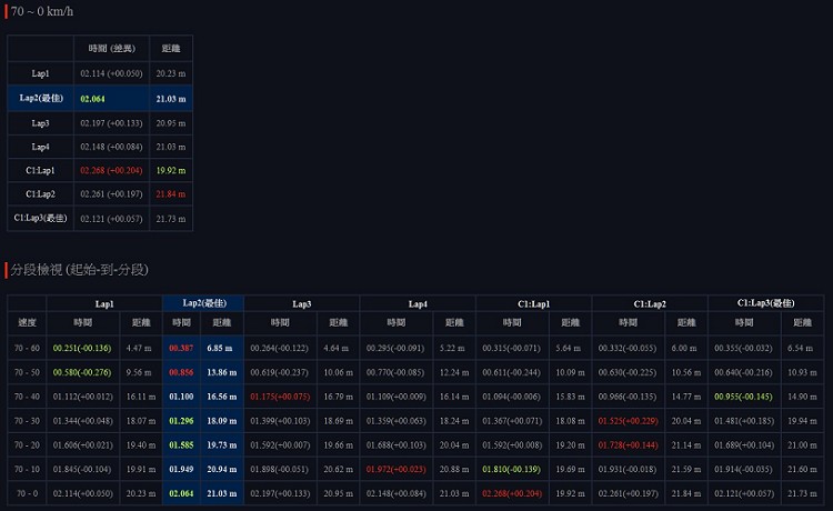 ![]() ▲使用LIZARD之後可縮短到2秒,之間有著0.1-0.2秒左右的進步,距離部分也有1公尺左右的差距。