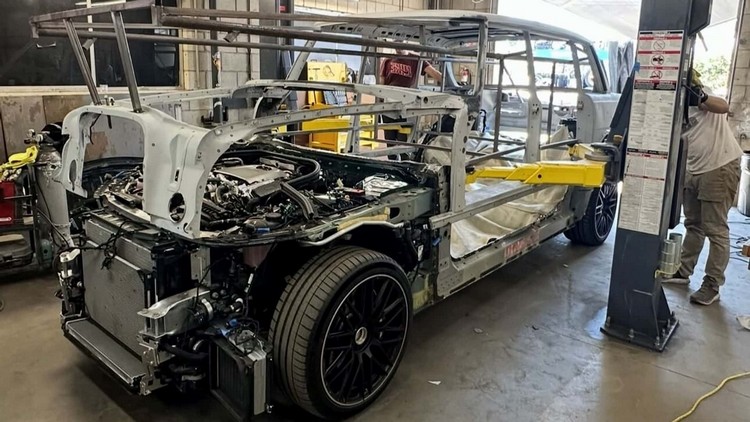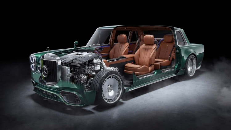 這並非單純的經典車翻新,而是徹底的「車架移植工程」。由於短軸版 W100 與現行長軸 S-Class(V223)軸距幾乎相同,團隊索性將整輛 S63 作為「零件」車進行完整底盤交換。換句話說,這輛看似來自 1970 年代的豪華禮車,實際上擁有一整套最新世代 AMG 油電旗艦的核心科技。