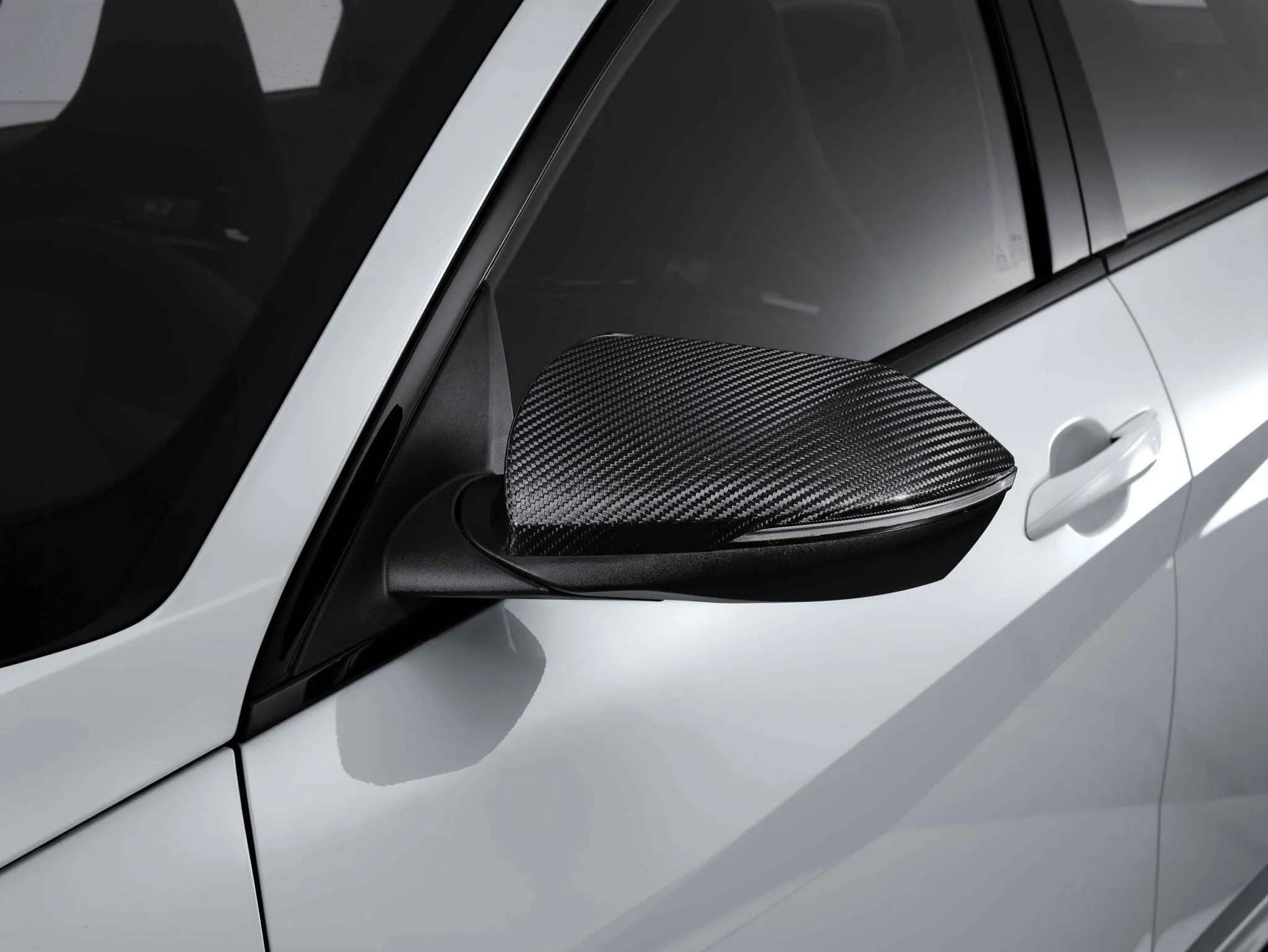 車內配件還包含 N 專屬腳踏墊與門檻飾板,後者採用高品質合金打造,可有效防止日常使用造成的刮傷與磨損。針對 Elantra N,原廠更提供進階升級選項,包括碳纖維後尾翼、碳纖維後視鏡外蓋,以及 19 吋鍛造鋁圈。該鋁圈單顆重量約 10.5 公斤,並採霧黑塗裝,兼顧輕量化與視覺效果。此外,內裝也可進一步升級 Alcantara 排檔頭、手煞車與中央扶手,強化整體戰鬥氛圍。