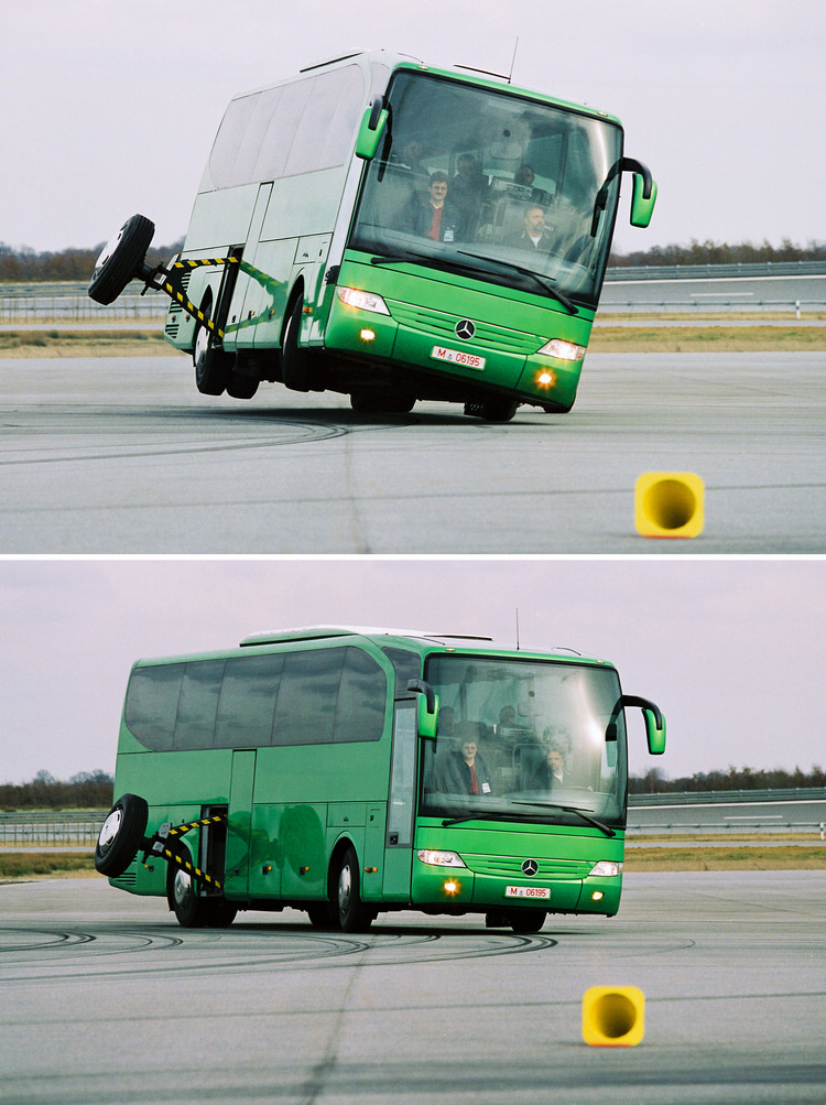 "ESP只是主動安全的起步"![]() ▲身為ESP 電子車身穩定系統的共同發明人,Frank-Werner Mohn的安全思為廣為其他車廠仿效,堪稱ESP 之父。ESP 之父Frank-Werner Mohn表示:「在主動安全的領域上,ESP 電子操控系統不是最高成就,僅是剛剛起步的最初成果。」的確,立基於此,M-Benz持續邁向更全面的安全防護科技,不僅只於座艙內駕乘客的保護,更涵蓋至道路上的相關用路者,期望將自身安全思維發揮極限,因為M-Benz深知,成就自在快意奔馳、追求時尚跑格生活,安全始終是唯一關鍵。 ![]() ▲M-Benz商用車生產的Travego是全球大型巴士中,率先搭載ESP主動安全科技的車款之一。由測試比較圖中可以看見有無ESP所造成的差異。.