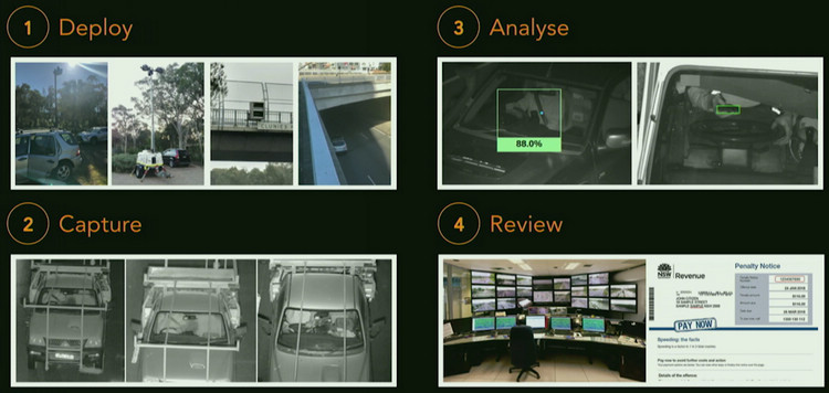 澳洲的新南威爾斯州從2019年1月1日起,開始啟用智慧相機來偵測開車時使用手機的駕駛,成為全球首例。這種新型相機透過人工智慧與高解析技術來識別駕駛人是否正在使用手機,在2018年10月進行一項廠商競標的道路實測時發現,短短一個月竟然就揪出高達11,000人次的違規者;由於成效卓著,主管當局立刻決定從今年開始在雪梨M4高速公路和Anzac Parade等要道進行為期90天的測試,未來可望成為舉發低頭族的合法證據。