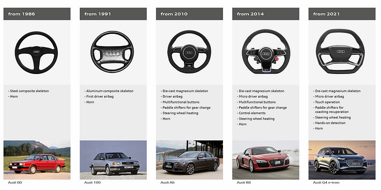 Audi方向盤 ── 從鋼架演變至高科技轉向科技的歷程