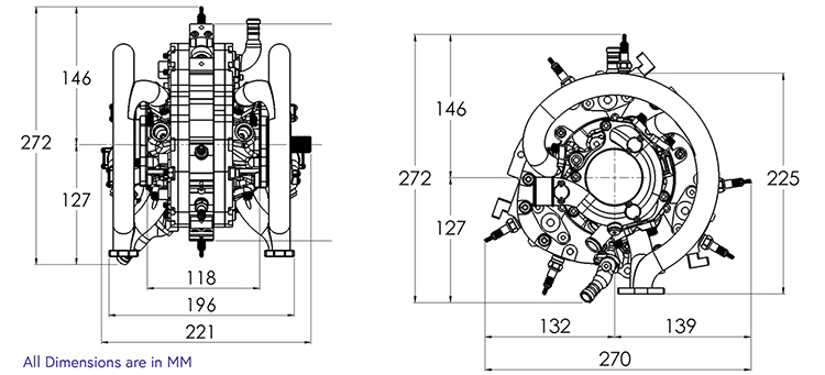 至於該公司這次推出的XTS-210引擎,體型約與籃球相當,重量只有19kg,尺寸和重量比起活塞式柴油引擎少了近80%,卻保有差不多的功率輸出水準;換句話說,XTS-210馬力重量比是柴油引擎的5倍,而扭力重量比則是3倍,這樣的特性讓它很適合作為輕型機具的動力系統。這種便於攜帶的優點,讓它擁有多元的應用面向,譬如初期測試時,就曾將這具引擎裝在卡丁車進行相關測試,除此之外,XTS-210也能夠作為發電機,或搭配電池作為混合動力系統,最高轉速7000rpm也適合用於小型載具或輕型飛機,而水冷及可進行火花點火(SI)或壓縮點火(CI)的特性,更符合軍用對於穩定性的要求。
