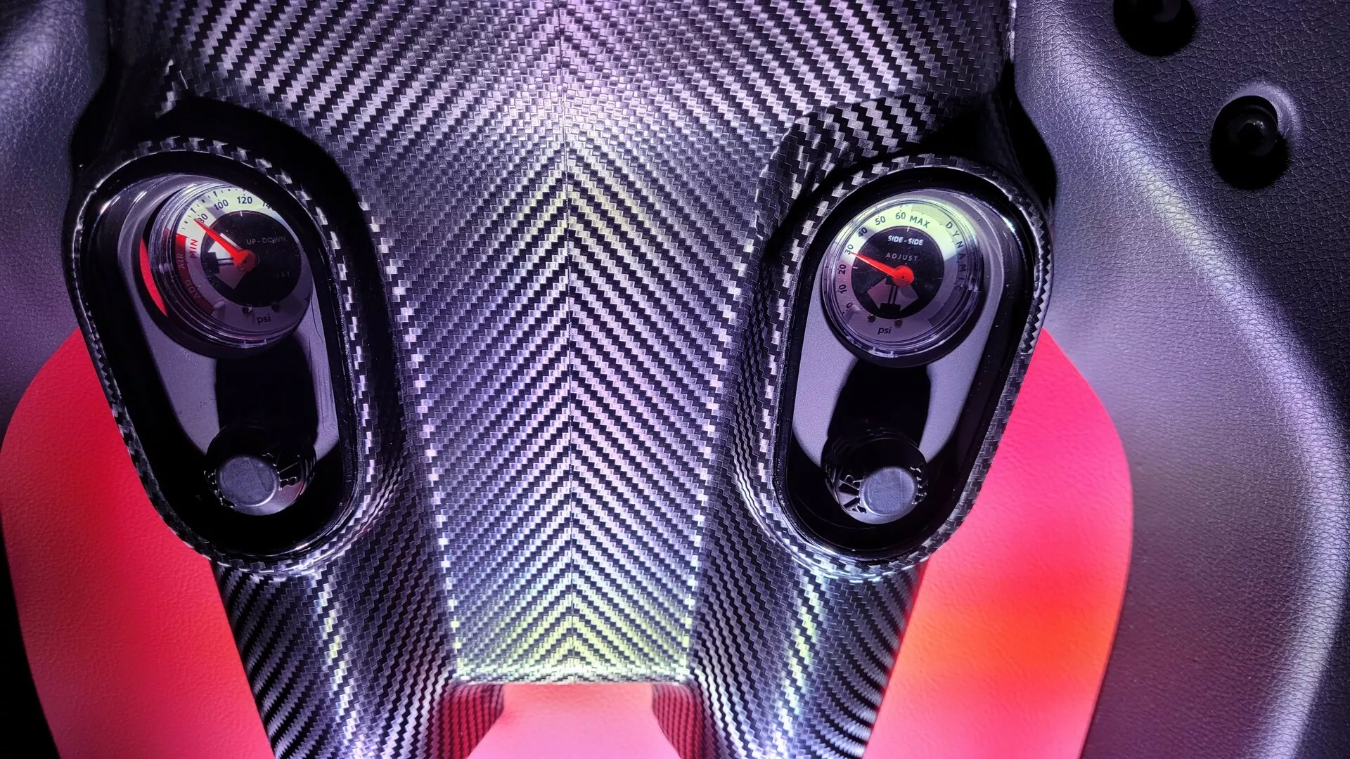 更特別的是,這套座椅並未完全依賴電子系統,而是保留了相當「類比」的操作方式。在後座後方,Toyota 設置了一具手動打氣幫浦,外型就像常見的球類或自行車打氣筒。透過這個幫浦,駕駛可以自行調整座椅內部的氣壓,依照個人偏好或地形需求,決定座椅回饋的軟硬程度。