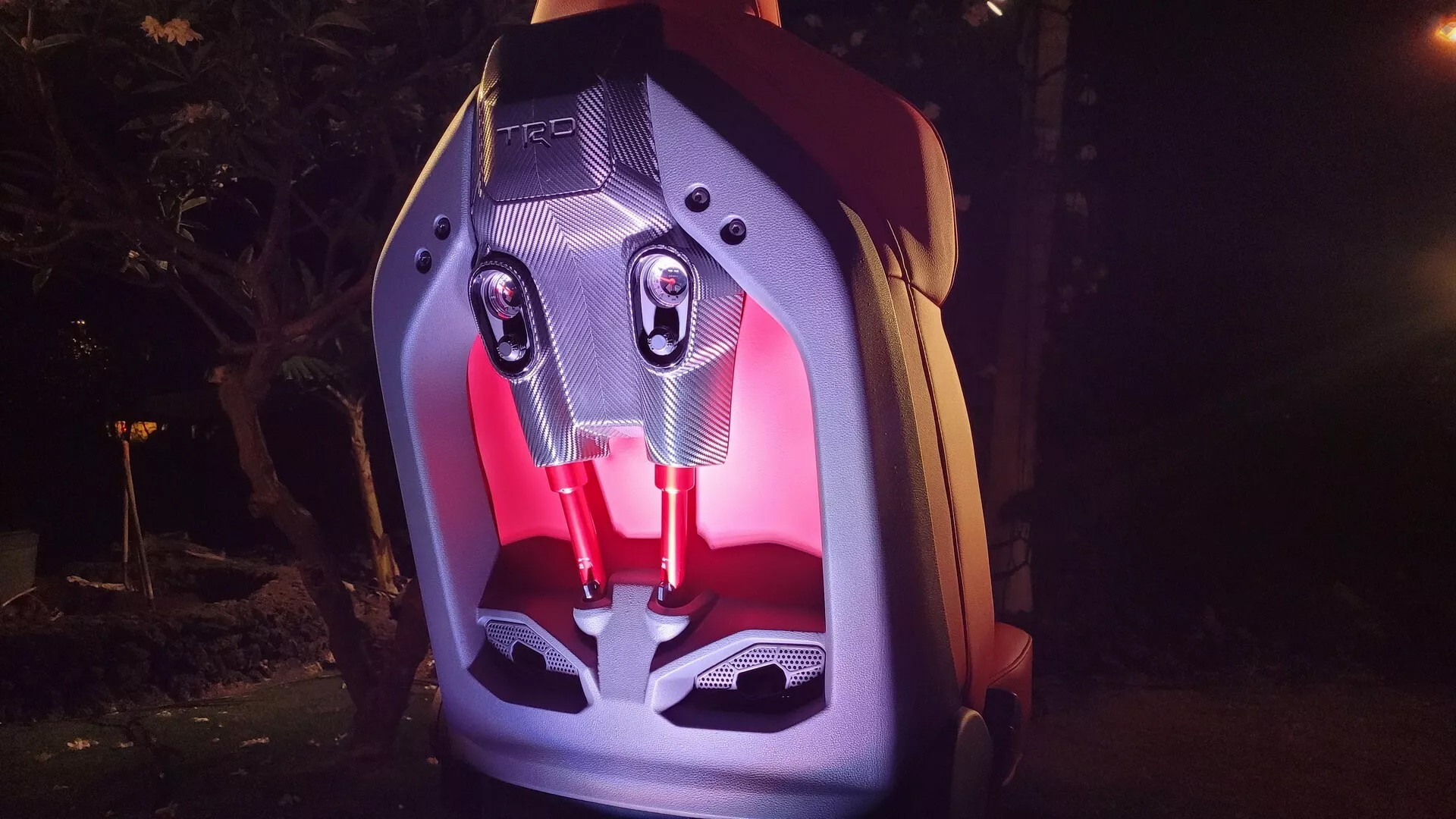 這套座椅最早隨著主打越野性能的 Tacoma TRD Pro 問世,看似造型前衛,實際上內藏一整套機械結構,目的並非舒適而已,而是在非鋪裝路面行駛時,協助駕駛穩定身體、減少衝擊,讓操控更加可控。Toyota 強調,這並不是為了炫技而存在的複雜設計,而是一套真正為越野環境量身打造的實用系統。