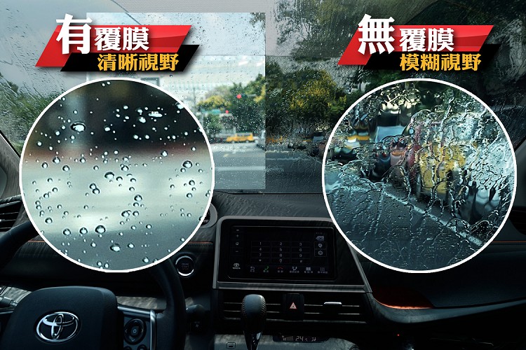 因應雨季到來,為了保障車主在雨中的行車安全,TOYOTA提供前擋玻璃覆膜服務(建議售價1,000元),具有強力驅水性及降低眩光作用,讓車主在大雨中能保持視線清晰,安全開車好放心。雨季商品還有車身水覆膜(建議售價300元),能防止髒汙附著,維護車身亮麗光澤,夏日出遊超有面子。