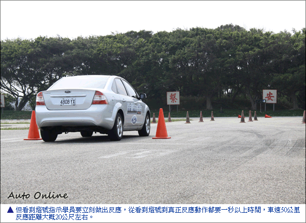緊急反應迴避體驗駕駛在路上碰到狀況後到實際開始動作的這段時間稱之為反應時間,實際操作至車輛停止稱之為煞車時間,讓我們了解當駕駛實際碰到狀況後做出反應通常是一秒之後,反應距離也會因為車速越快而距離越長,當車速在50公里時,反應距離為20公尺左右,如果車速過快反應距離很有可能會超過一百公尺,所以保持行車距離才能確保有足夠反應時間跟反應距離。