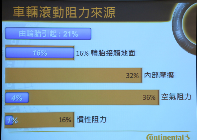 ▲分析車輛阻力來源,由輪胎引起就佔了21%,因此採用低滾動阻力胎肯定對於省油會有所幫助。