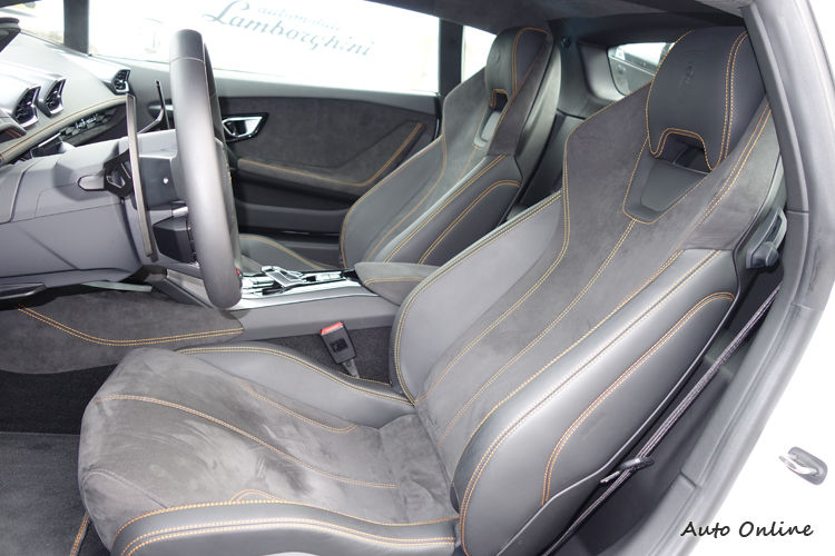▲這組麂皮跑車座椅的包覆性極佳,多向調整功能維持最佳駕駛姿勢。