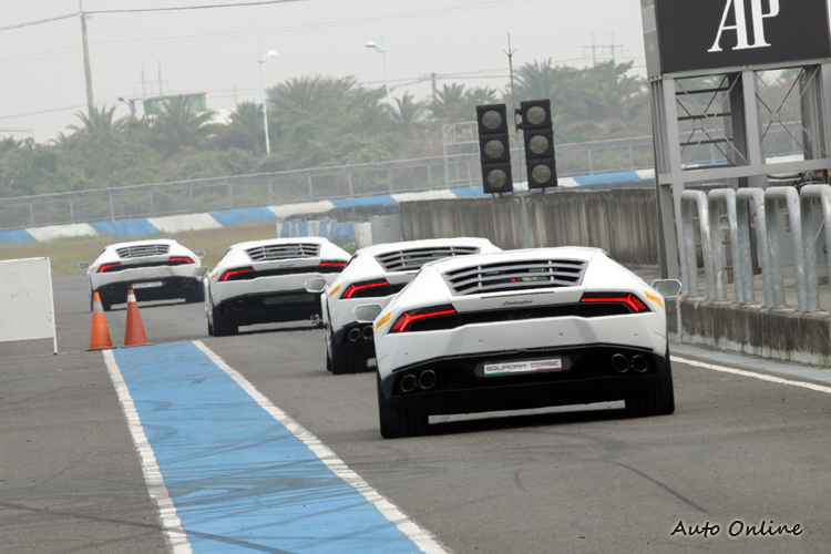 由於本次活動性質只針對Huracan LP610-4這款車,為了能讓參與來賓在場上完整接收來自教練的即時指導,採用的是一對一的駕訓方式,也就是教練和來賓各開一台Huracan上場,來賓跟在教練車後學習最佳跑線和車速控制,教練也會隨時透過無線電提示體驗的重點。這樣的好處是能讓駕駛專注駕馭,試駕者能夠自我超越且發現Huracán LP 610-4馳騁賽道的無限樂趣。