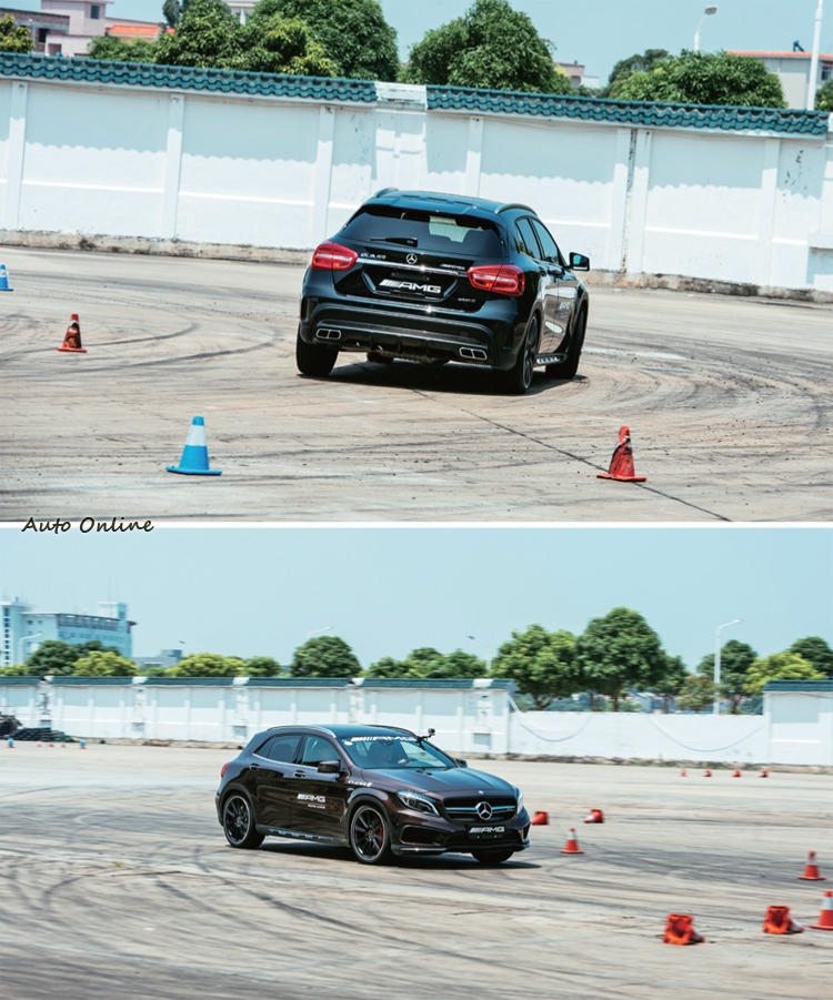 ![]() ▲刁鑽靈活的A45 AMG練高速繞錐非常過癮,此訓練的重點在駕駛者的目光,需關注在錐桶之間的路線,與油門的運用。煞車變線則是高速重踩煞車同時迴避的例行戲碼,不過車速越來越高,頗考驗駕駛的反應速度與右腳敢不敢完全重踩煞車。帶煞車入彎則讓我嗅到了賽車技術的味道,即所謂的「Trail Brake」。 ![]() ▲A45 AMG與CLA 45、GLA 45都搭載2.0升直列四缸渦輪增壓引擎,最大馬力360hp/6000rpm。最大扭力450Nm/2250~5000rpm,也都是4MATIC四輪驅動。![]() ▲CLA45 4MATIC AMG在路上遇到會豎起大拇指,但在此次訓練中,360馬力僅是最入門的訓練車款。以前驅為基礎的四輪驅動過彎還不賴,少有推頭的現象,但重踩煞車時車身仍會搖擺,和GTS遠遠不同等級。![]() ▲AMG GT S搭載4.0升V8雙渦輪增壓,前中置引擎、後輪驅動的配置達到完美的配重。510馬力與650牛頓米的扭力搭配7G-DCT雙離合器自手排變速箱,0-100km/h僅3.8秒。