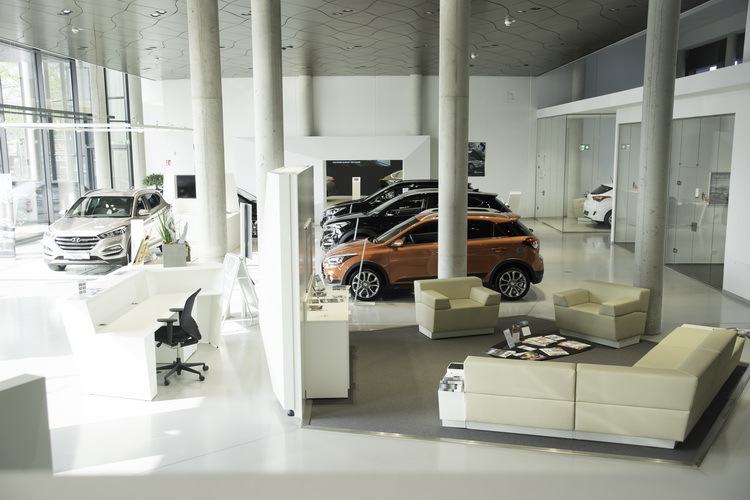 ![]() 法蘭克福的這間HYUNDAI展間是於2014年11月正式開幕營運,佔地8271平方公尺,展示間面積為2466平方公尺,維修服務區則為2000平方公尺。整座展間完全符合HYUNDAI的GDSI規範,包括戶外牆面設計、展間樓層配置、照明、家具裝潢等等。