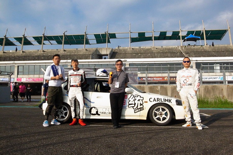 ▲O.T.G.P耐久賽由知名店家特波提供的Honda Civic K8,車手(左起)我、詹秉奇、李一統、郭正浩四位車手。