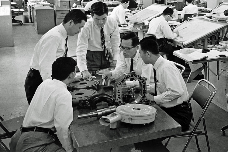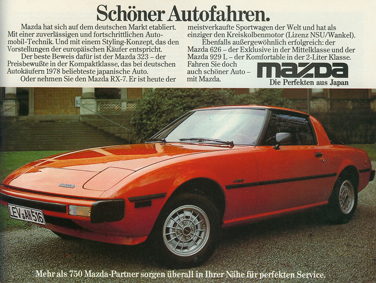 ![]() ▲Mazda 787B在1991年利曼24小時耐久賽擊敗所有參賽隊伍,為日本車廠及Mazda取得首次大賽勝利。開發RX-7的經驗,後續被運用於更高階的四轉子引擎787B賽車,這款車在1991年的利曼大賽中擊敗所有參賽者的主流內燃機動力而為日本車廠及Mazda取得首次勝利,一舉震驚全世界,至今它仍是唯一在這項賽事獲勝的轉子引擎賽車,也是這種動力科技在賽車領域的巔峰。 ![]() ▲著名二輪車手Valentino Rossi與787B合影。![]() ▲經歷兩位社長,以及山本健一(圖中戴眼鏡者)帶領的研發團隊,轉子引擎最後成了Mazda最足以代表其運動跑車的代表。![]() ▲1978年推出的RX-7是是世界上第一款在市場上成功推出的轉子引擎量產跑車,車系同時也是有史以來銷量最好的轉子引擎車。
