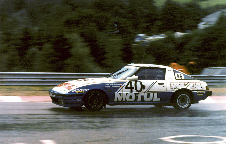 賽車場上的空前成就![]() ▲Mazda RX-7是1981年Spa 24小時耐久賽場上唯一採用轉子引擎的賽車,並以此奪下當年冠軍。從1961年決心投入研發轉子引擎以來,Mazda社長松田恒次藉由與發明 Wankel迴轉式引擎的西德NSU摩托車廠(現今AUDI汽車公司前身之一)技術合作,將公司的命運押注在這種當時被視為過於夢幻的內燃機設計上,隨著後續的松田耕平社長接棒研發並加以改良,才讓RX-7獨特的雙轉子運轉聲得以響徹歐美公路與賽道。 ![]() ▲RX-7隱藏式大燈及其絕佳空氣力學造型,高效率引擎在講究大馬力的Spa賽車場上如魚得水。![]() ▲由Pierre Dieudonne和Tom Walkinshaw兩位知名車手駕駛的RX-7 12A RE雙轉子引擎賽車,在Spa-Francorchamps 24小時耐久賽中,將兩輛BMW 530is遠遠拋在後面。![]() ▲80年代瘋狂的WRC B組賽事中,RX-7也沒有缺席,Ingvar Carlson駕駛的這輛賽車還曾在希臘Acropolis拉力大賽中奪下第三名。
