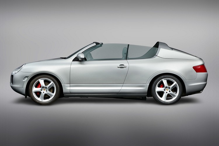 如果這部車真的投入生產,那麼車尾設計勢必會定案,所有技術問題無疑會獲得獲得解決。當時廠方設想出一種如今看來相當熟悉的軟頂機構,也就是讓行李廂蓋前後都與車體連接,使其可以從兩個方向開啟。車頂開啟後將穿過固定式的防滾架,「沒入」後方以反向開啟的行李廂蓋後,以「Z」字型摺疊,這樣的軟頂運作方式,其實與991世代起的911 Targa非常相似。然而,這個機構在Cayenne敞篷車上從未經過電腦驗證階段,也並未完全打造出來。所以,織布車頂至今仍被存放於博物館藏車的行李廂中,必須以手動方式才能進行安裝。