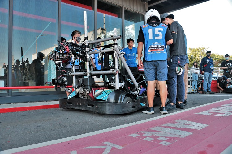 ▲辛苦的器材組在雙座卡丁車後方架上專業攝影機,控頭學員坐在副駕捕捉後方車輛。