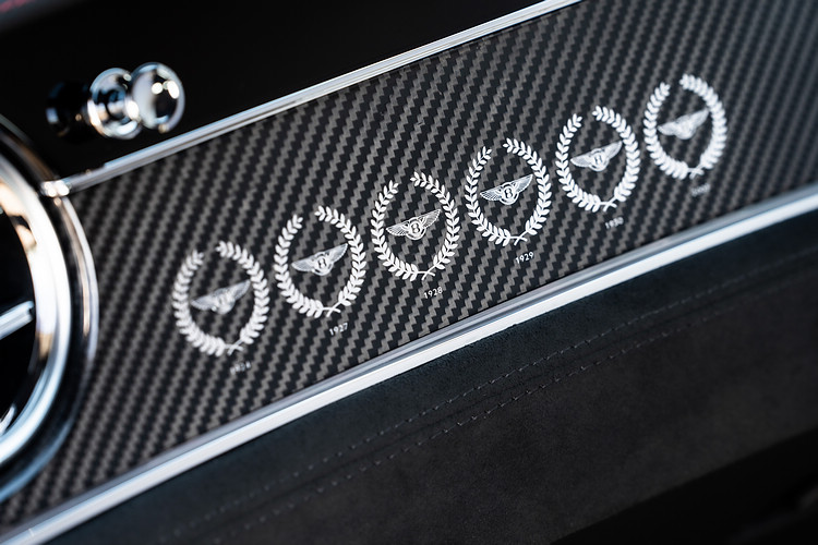 車頭水箱罩導入的矩陣式格柵設計看似平凡,但其實是當年Bentley為了應付1920年代利曼賽道尚無鋪裝柏油路,作為保護的獨特設計,如今已成為這家車廠及所有汽車的典型特徵。紀念款上選用的“7”就是1924至1930年間,Bentley贏得五次冠軍所用的車號。