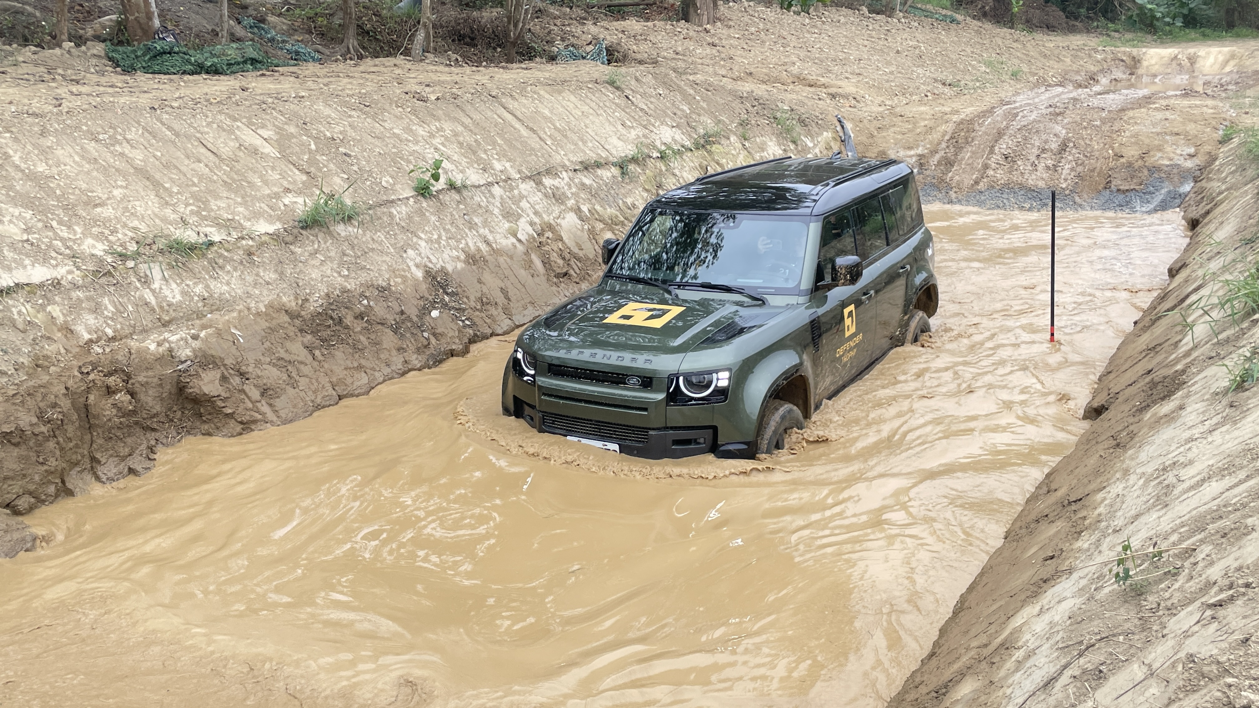 首先登場的當然是越野駕駛關卡。我們坐進了 Defender 的駕駛艙,老實說,在這樣充滿原始野性的環境裡,車內那種頂級真皮座椅的觸感、高畫質的大尺寸數位螢幕,以及冷得讓人發抖的空調,實在有種強烈的違和感。面對深不見底的 V 型泥濘溝壑與落差極大的砲彈坑,如果是一般的休旅車,我早就下車點根菸準備叫拖車了。但教練只透過對講機冷冷地說:「氣壓懸吊升到最高,地形反應系統切換到泥濘模式,相信你的車,不要依賴速度,慢才是快。」對於一個習慣在柏油路上掌控一切的駕駛來說,要把生命安全交給一堆電腦晶片,絕對需要極大的心理建設。 ![]() 我深吸一口氣,輕點油門,車頭猛然向下傾斜,巨大的失重感讓我忍不住抓緊了方向盤。車底偶爾傳來金屬護板與泥地摩擦的沉悶聲響,聽得我一陣肉痛,但 Defender 似乎一點也不在乎。它就像是一頭優雅但固執的犀牛,中央和後軸的電子差速器在電腦的精密計算下不斷鎖定與釋放,搭配 ClearSight 透視引擎蓋技術讓我清楚看見車底的盲區,就這樣一步一步、穩扎穩打地把自己從泥沼中拔了出來。在市區塞車時,你絕對無法體會到這種強大的征服感與安心感。