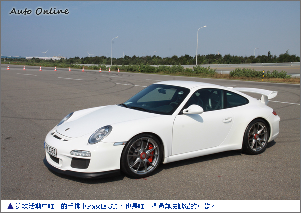 ![]() 兩年一度的Porsche Roadshow這次移師到彰化ARTC財團法人車輛測試研究中心,參加過多次其它車廠所舉辦的安全駕駛體驗營,Porsche還是第一次,不過可以一次體驗Porsche所有車款要筆者清晨五點起床也甘願。這次Porsche Roadshow原廠安排了多達25種車型,除了911、Cayman、Boxster跑車之外還有豪華房車Panamera、SUV車款Cayenne,活動當天現在場最受矚目的性能跑車是從德國空運來台的911 GT3也是現場唯一的手排車。