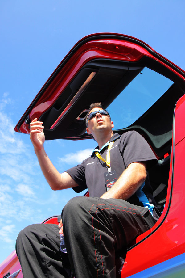 ![]() ▲包括SLS AMG在內的四款AMG猛獸,都是本次賓士進階駕馭體驗營的訓練使用車,不過大家的眼睛裡面似乎只有一台車。另外從本次經驗中我們也發現了鷗翼車門的另一項優點,原來大太陽下這樣的設計散熱很快!![]() ▲除了SLS AMG以外,C63 AMG、SLK55 AMG和ML 63 AMG也提供每個人親自駕馭的機會。![]() ▲教練Wim提醒大家,想開SLS AMG之前,最要緊的事,就是別撞到頭,真的會很痛...![]() ▲號稱汽車媒體界最資淺的本社新進員工Austen(左),雖有無數激駕軍用採買車經驗,面對SLS AMG超跑難掩興奮之情,過SLS AMG戶限不覺屐齒之折。![]() ▲SLS AMG貼地性能也令人深刻,在繞錐場是唯一能夠緊貼教練駕駛的前導車的車型。