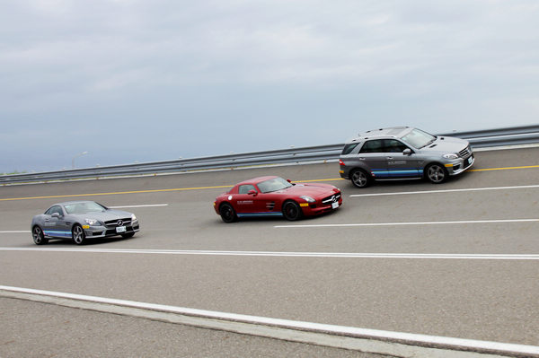 ![]() ▲加速時的引擎聲浪除了咆嘯聲分貝量十分驚人,令人懷疑究竟這部車是怎麼通過噪音檢測的。![]() ▲首度現身的SLK 55 AMG也很大方地讓大家用力開,相對於C63 AMG,它的引擎音頻稍高,特殊的呼嘯聲很容易辨識,轉向反應比預料還靈敏很多。