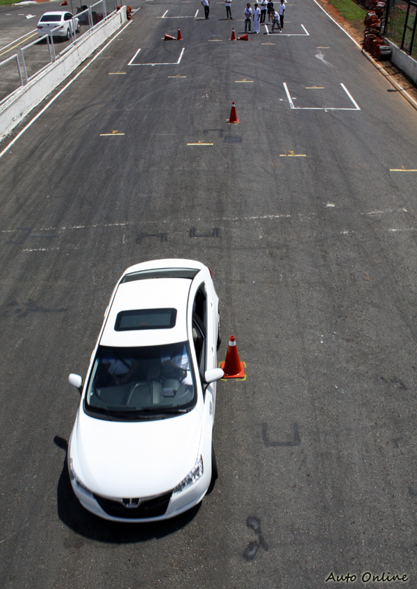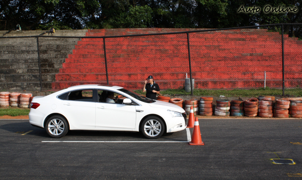 ![]() ▲教練示範繞錐,可以發現車身與錐筒的距離相差幾公分而已。