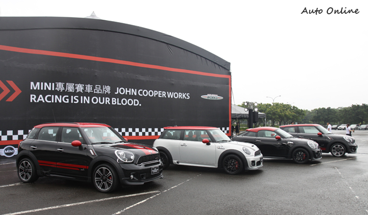 ![]() 且慢!MINI的John Cooper Works不是早就已經曾經引進國內銷售嗎?其實,過去引進國內的,多是掛著JCW名號的精裝車,雖然也配裝外觀套件和專屬配件,底盤懸吊也已經升級,但最重要的動力引擎並沒有隨之升級,而這次來到的卻是徹頭徹尾的競技化JCW版本,也就是內外皆由該部門所精心調校升級的專屬賽車配置與超高性能動力,而且總數只有100輛。包括MINI John Cooper Works、MINI John Cooper Works Coupe、MINI John Cooper Works Countryman以及MINI John Cooper Works Pacemann等四款全都引進,怎能不令人興奮? ![]() ▲四款John Cooper Works車型全部出動,帶給參與駕訓的學員們不同層次的熱血駕馭選擇。![]() ▲從車尾的角度來看這四款車,就更容易看出各自所擁有的風格差異。