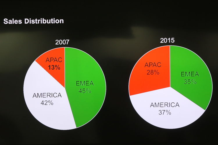Lamborghini亞太區總經理Andrea Baldi首先為在場媒體說明近年Lamborghini在全球市場上的銷售狀況,依據統計,從2010年的1302輛開始,Lamborghini每年交車量都出現明顯的成長,2015年更以3245輛的數字創下新高,比起前年足足增加28%,而2015年亞太區客戶的佔比也由2007年的13%翻倍提高至2015年的28%!